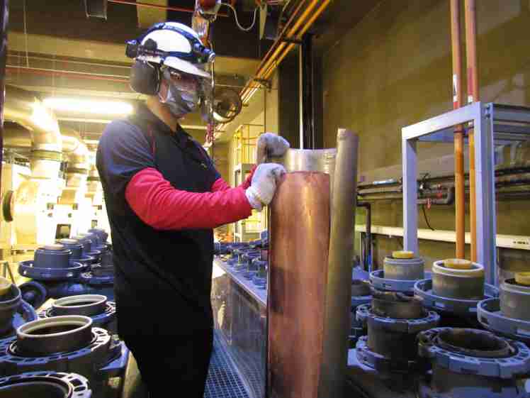 NG大舞台将废弃物转化成有效的工业或民生原物料,,,,图为废铜液淬炼后再制成纯度极高的铜管