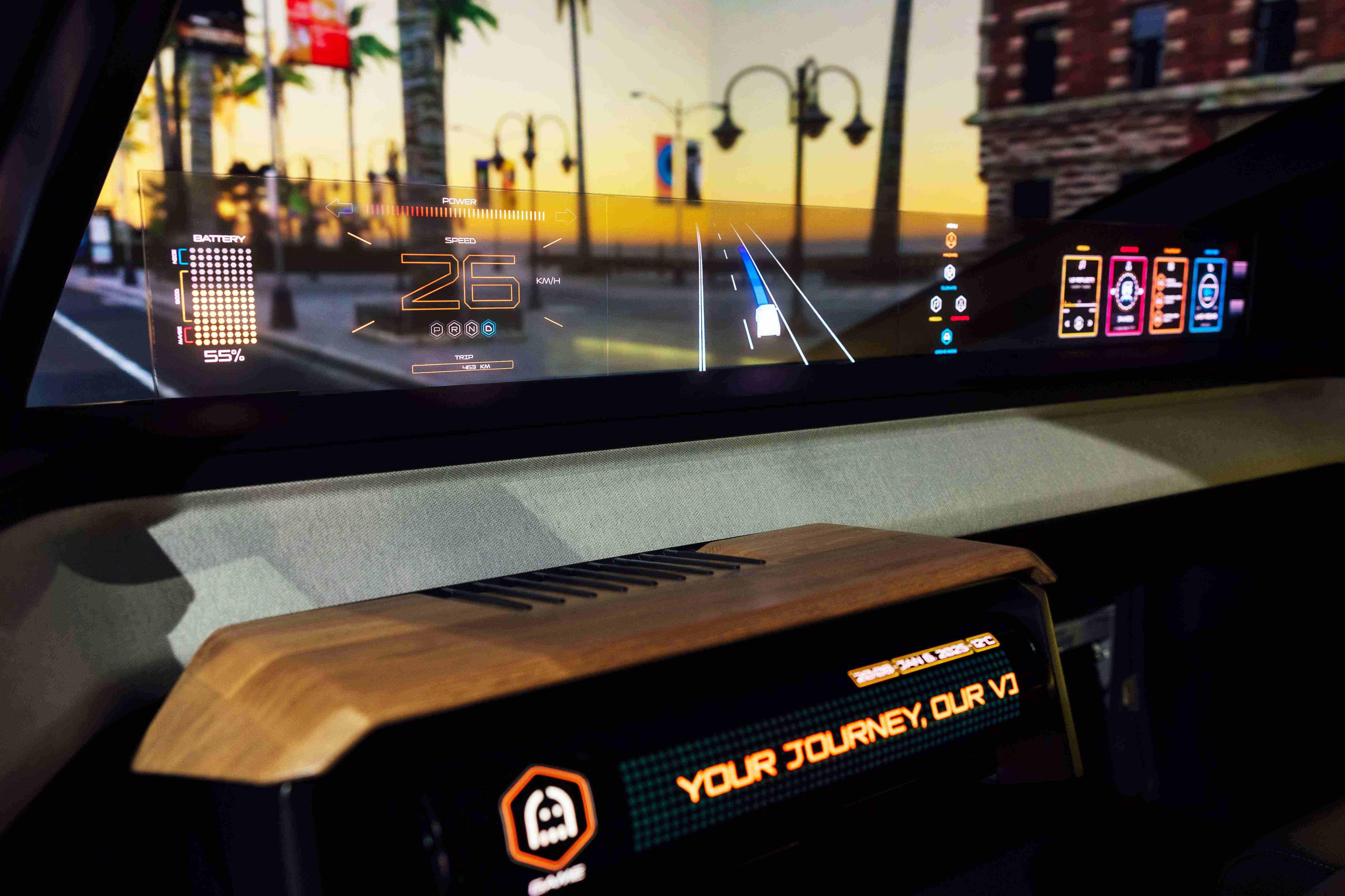 隐藏式智驾介面(Foldable Cruise Pilot)在不同模式下可以切换显示方式,,在手动驾驶模式时,,显示器可以在半收合状态下,,,,仍呈现所需资讯;自驾模式时,,,,显示器可以完全展开,,满足不同的多媒体娱乐需求。。。。 NG大舞台Smart Cockpit 2025 在车头及车尾搭载合作伙伴Ennostar开发的互动式矩阵显示器(Interactive Matrix Display),,其突破传设计框架,,,,利用优化的光源整合技术,,,,提供更高亮度与对比度的显示效果,,,,营造驾车者个性化风格并传递讯息。。。