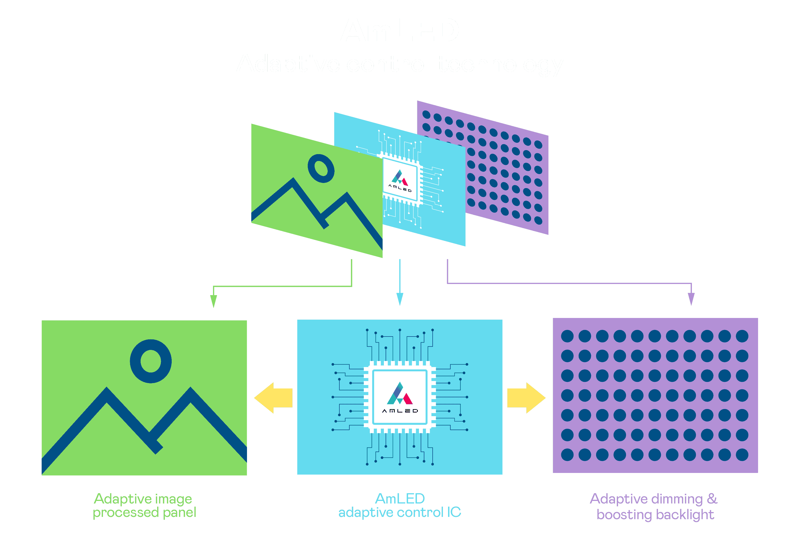AmLED 具备更省电与低蓝光特性。。。。与一般的 LED 背光显示技术相比,,,由于 AmLED 常时处于局部调光状态,,,,其功耗仅有前者的 50% 左右,,,同时 AmLED 还具备低蓝光特性,,,,满足长时间使用的护眼需求。。