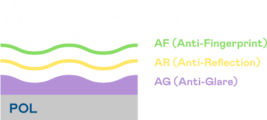 A.R.T.NG大舞台光电发展出独家的表面处理跟多层镀膜技术,,,,让外部光线照射到显示器表面时所产生的反射光大幅降低。。 |