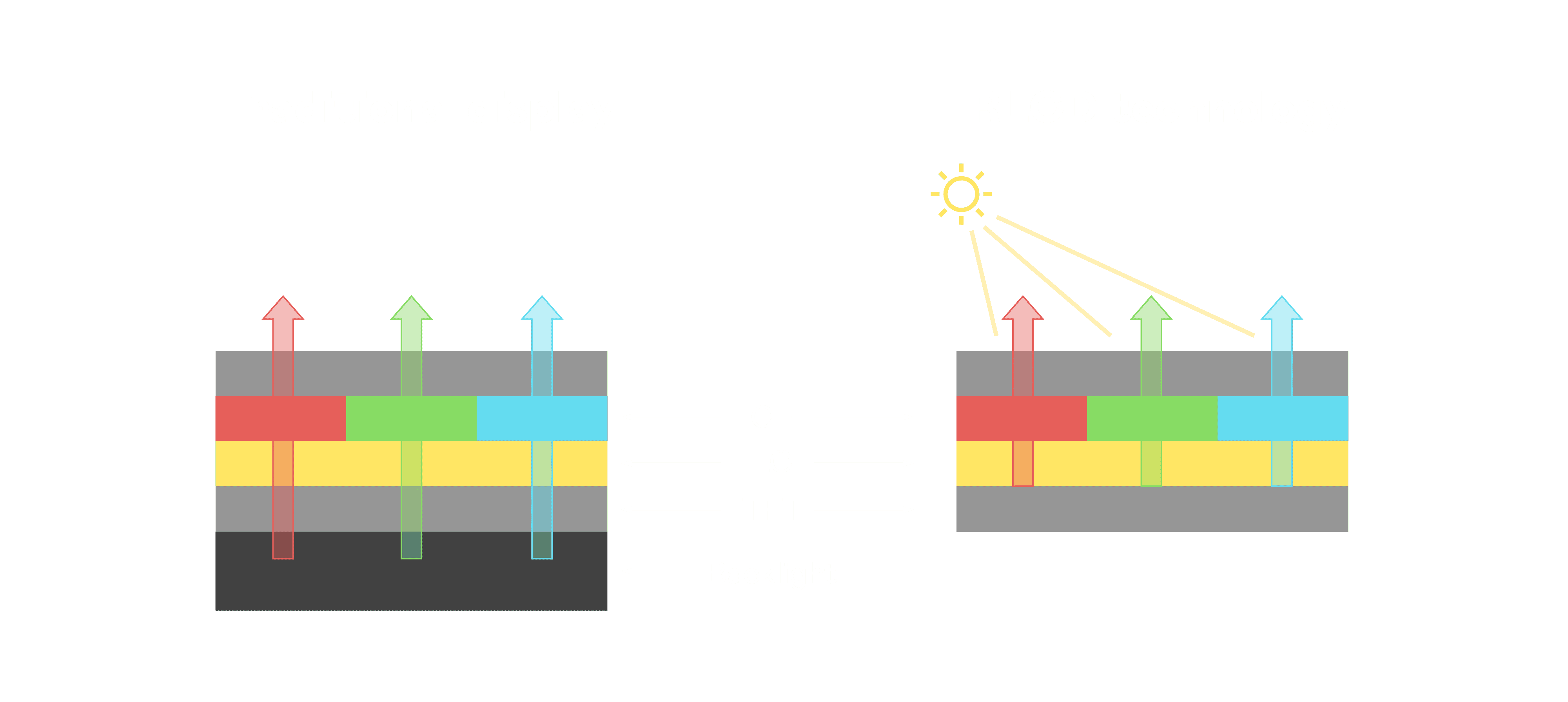 与传统需搭配背光单元的液晶显示相比,,,,反射式液晶技术不仅更省电、、、、更轻薄,,且即便在艳阳下仍能清晰显示。。此外,,,,少了背光单元,,,,也大幅降低了 LED 蓝光伤害眼睛的疑虑。。